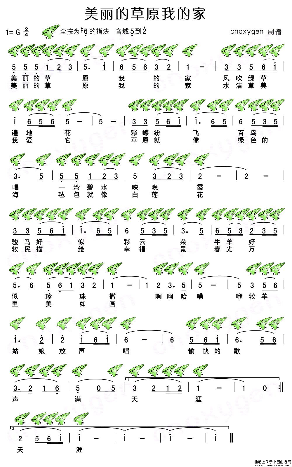 美丽的草原我的家(十二孔陶笛谱)
