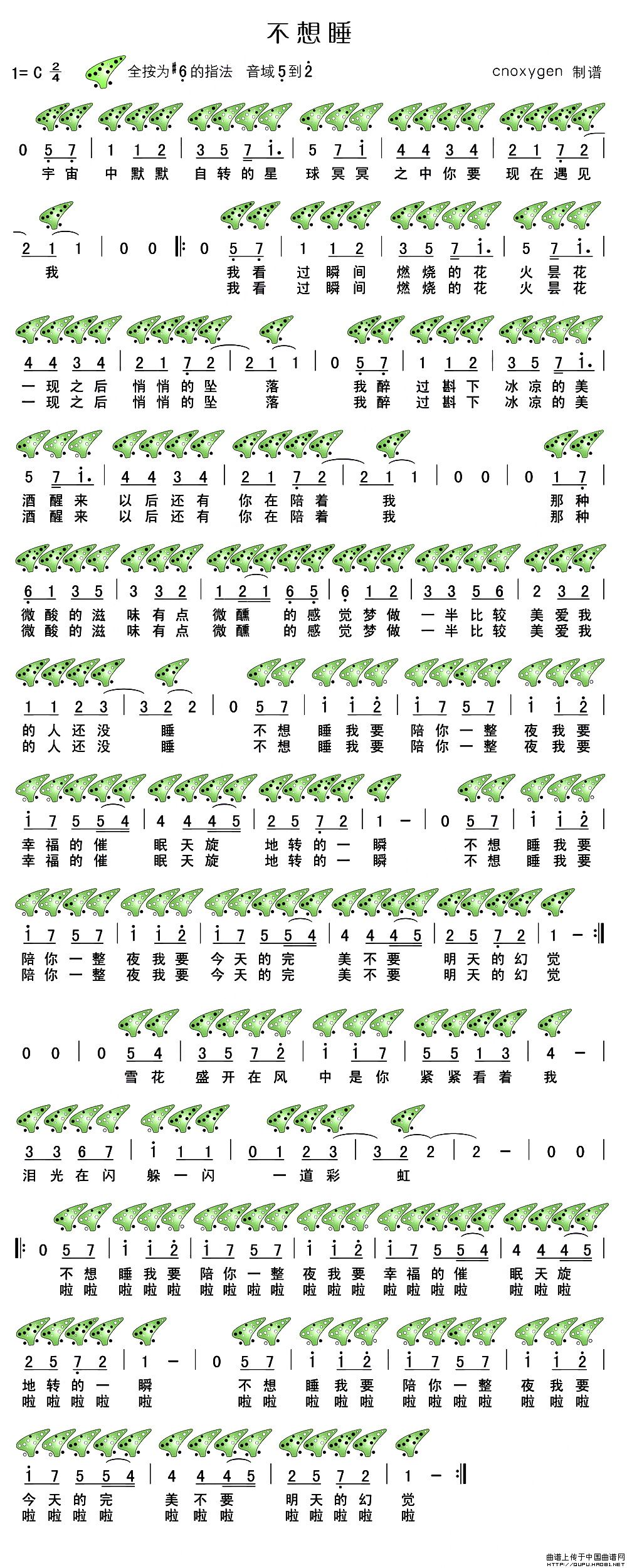 不想睡(《岛歌》中文版、十二孔陶笛谱)