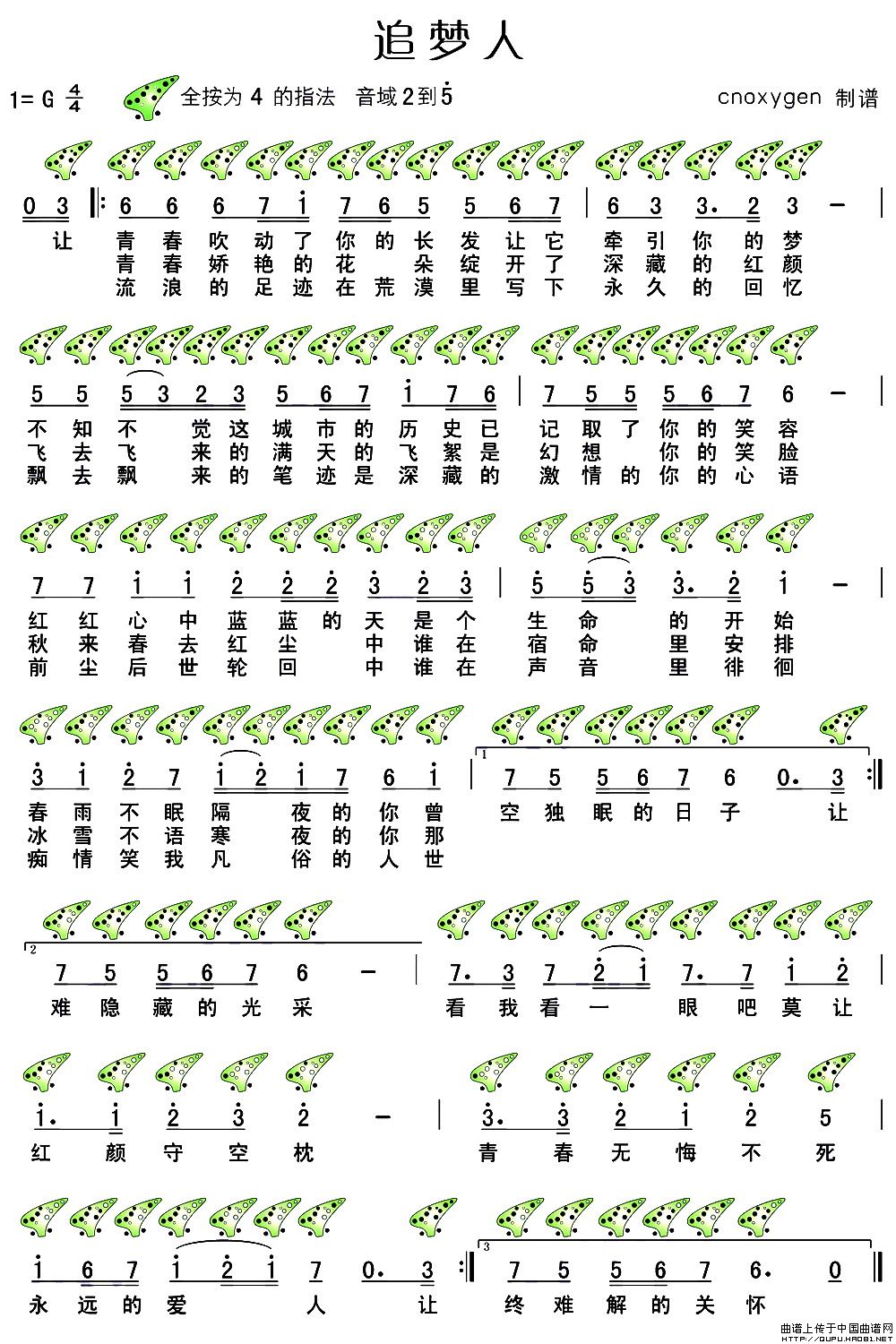 追梦人(电视剧《雪山飞狐》片尾曲、十二孔陶笛谱)