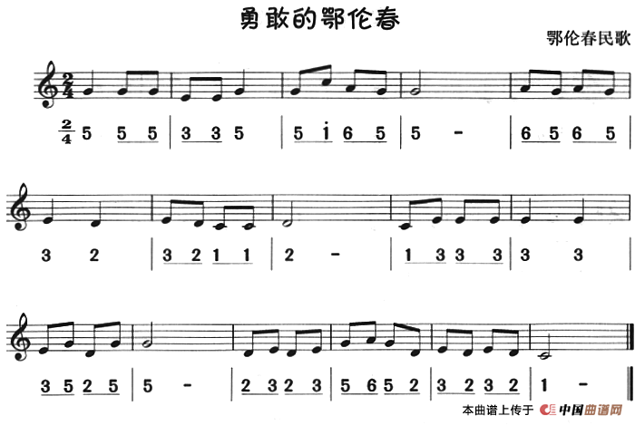 勇敢的鄂伦春(八孔竖笛线简谱对照版)相关五线谱