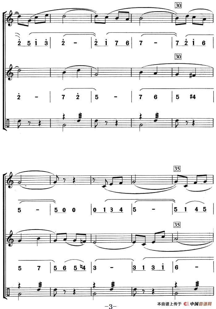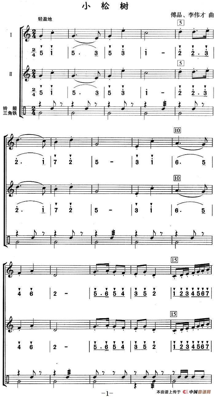 小松树(八孔竖笛线简谱对照版、三重奏)