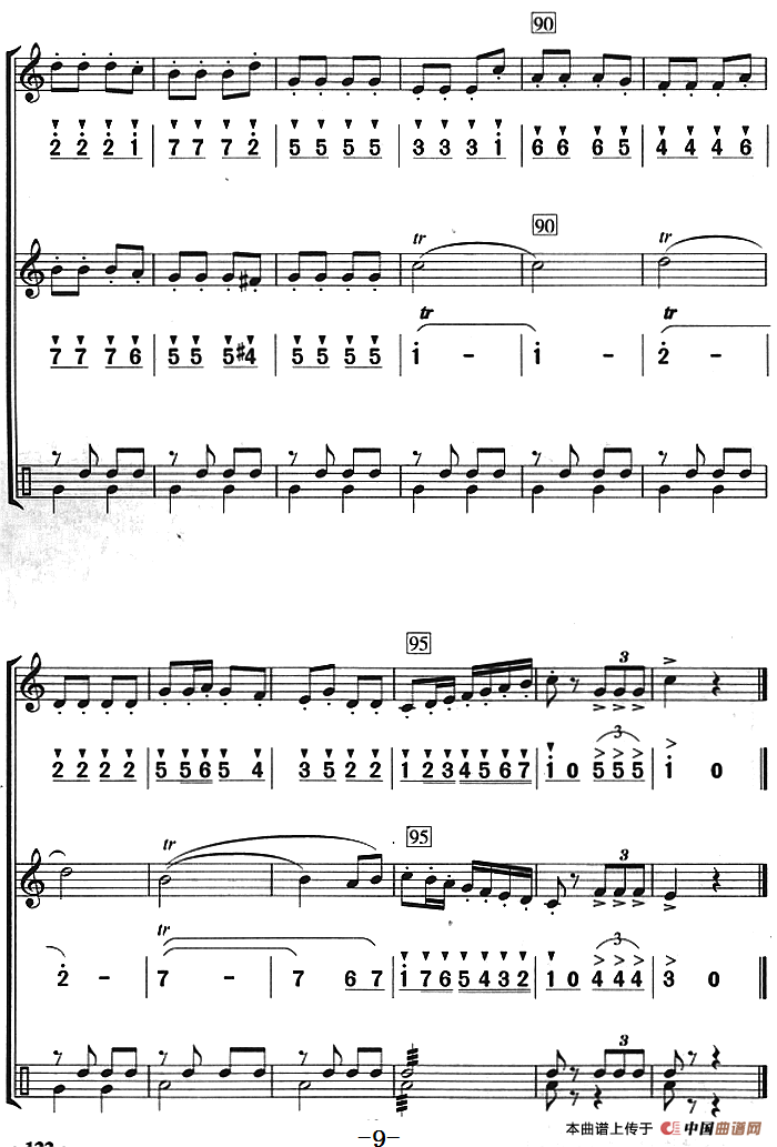 小松树(八孔竖笛线简谱对照版、三重奏)相关五线谱