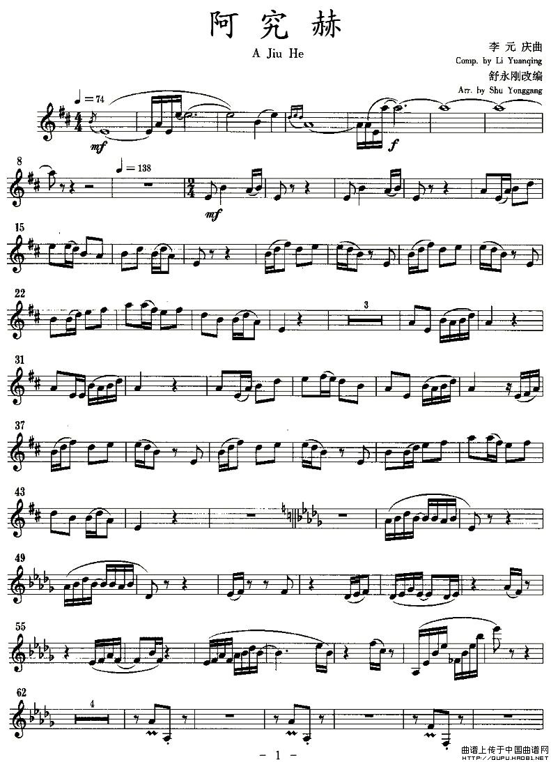 阿究赫(单簧管)相关五线谱