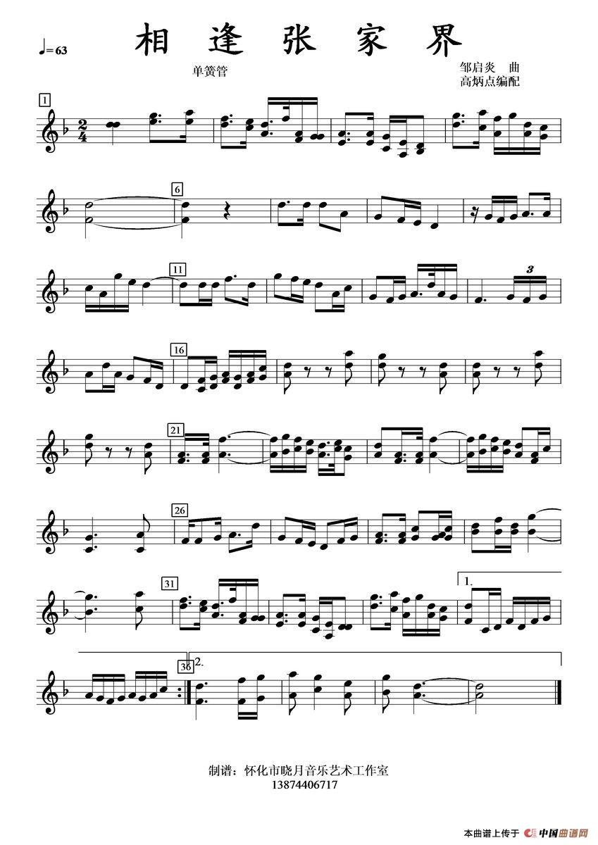 相逢张家界(单簧管)相关五线谱