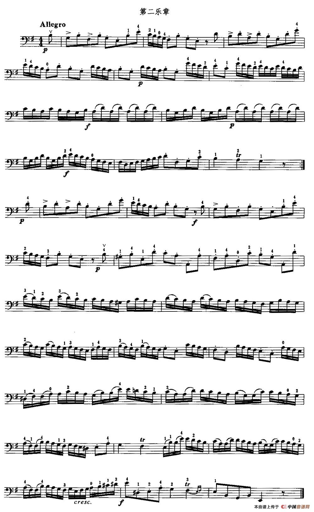 e小调奏鸣曲第二乐章(大提琴)相关五线谱