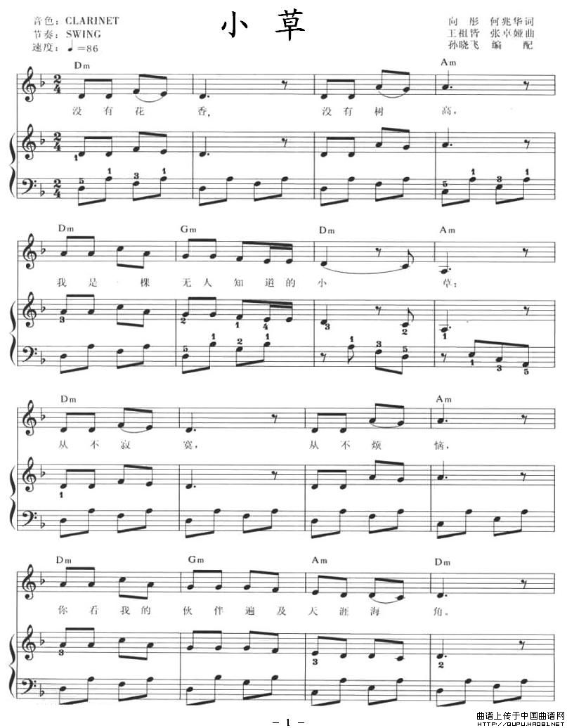 小草(弹唱谱、孙晓飞编配版)相关五线谱