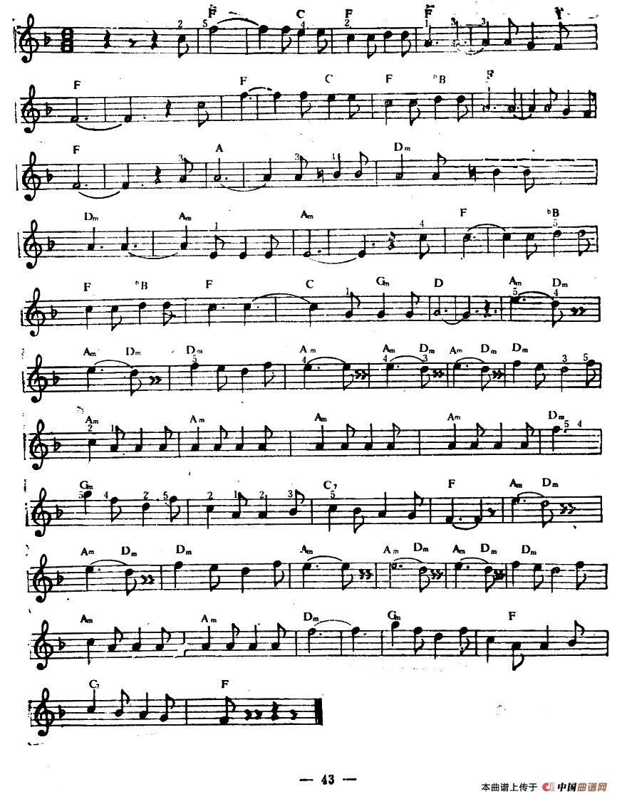 梅妃·思往事不由孤心中酸辛(京胡伴奏谱)