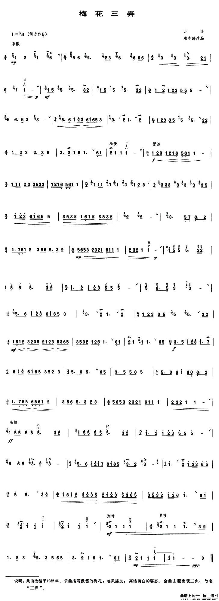 梅花三弄(陆春龄改编版)相关五线谱