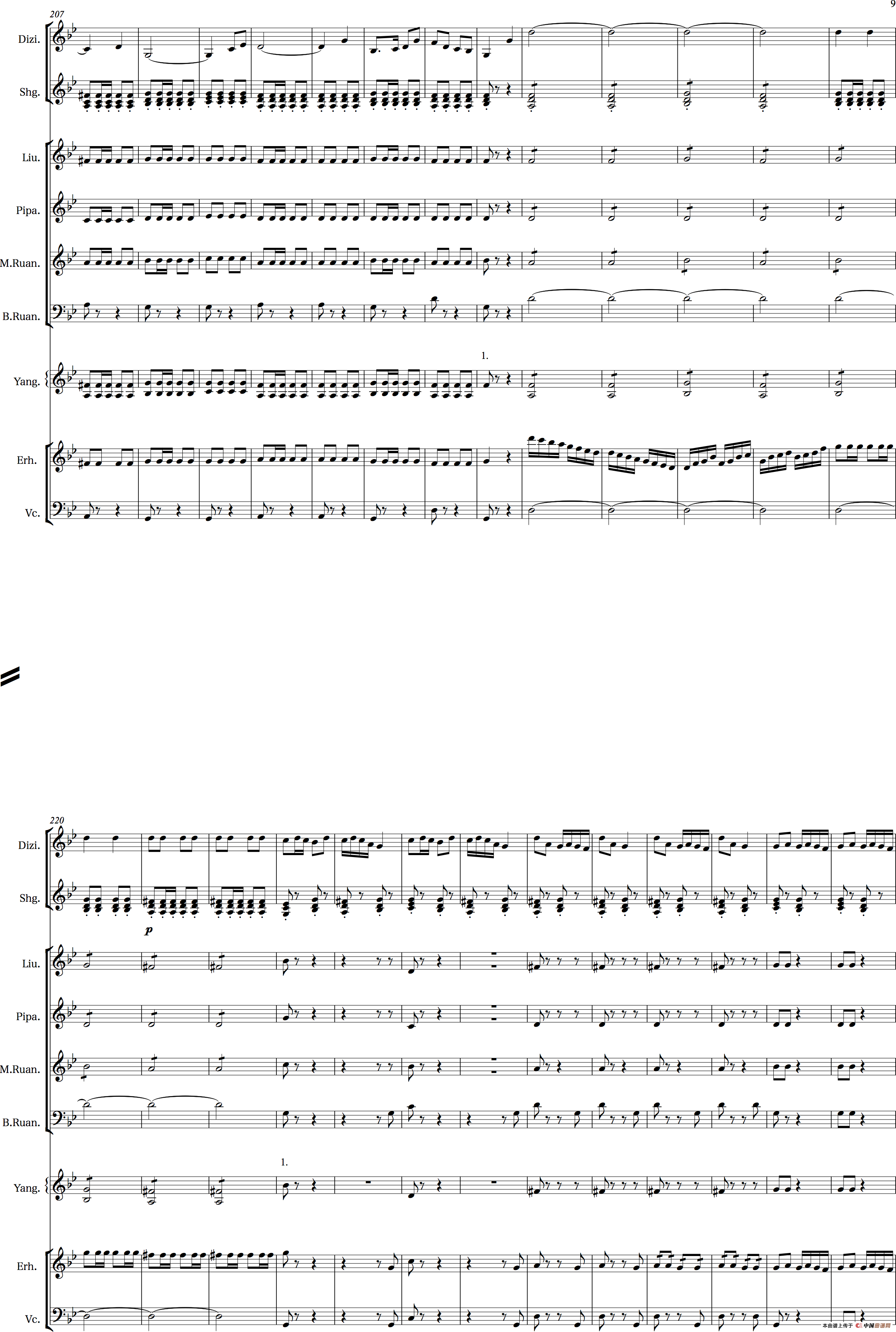 二人转开场曲《流畅》(器乐曲总谱.第九页)