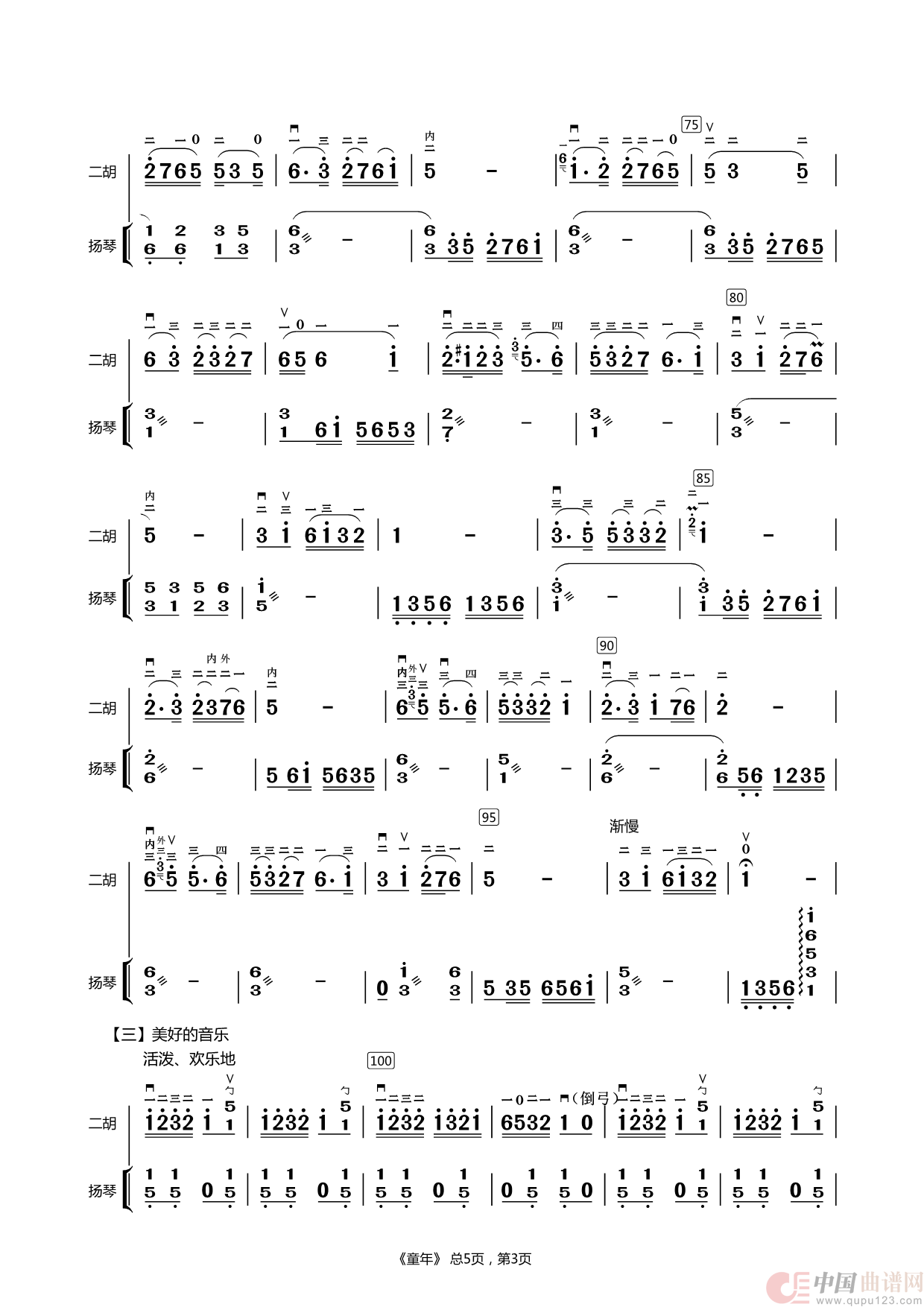 童年(二胡独奏)相关五线谱