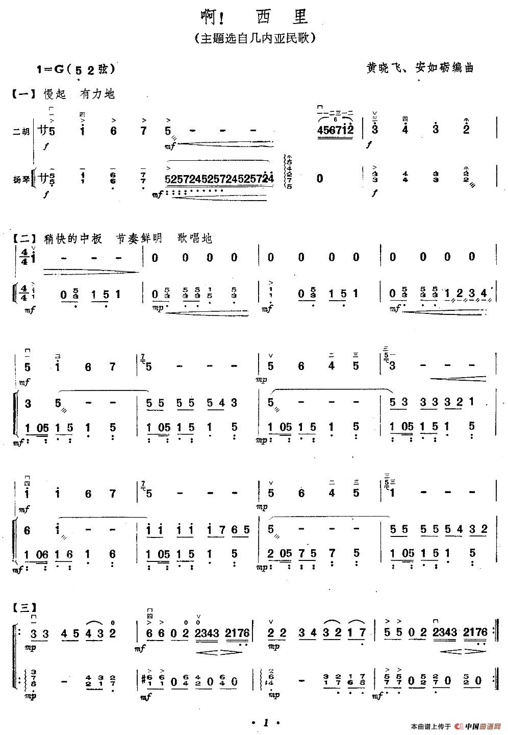 啊!西里相关五线谱