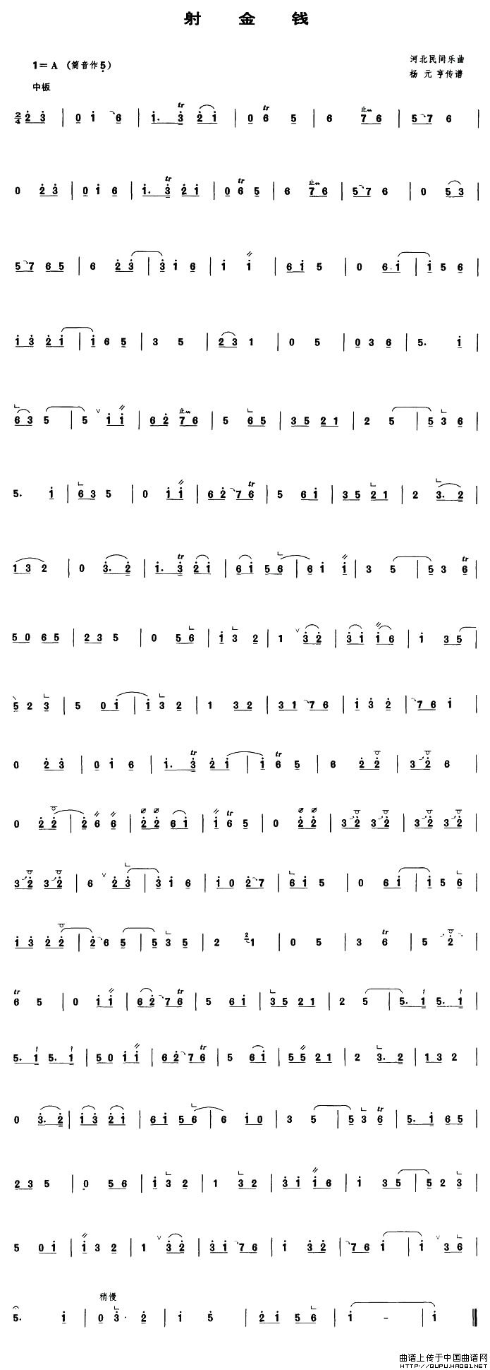 射金钱(管子谱)相关五线谱