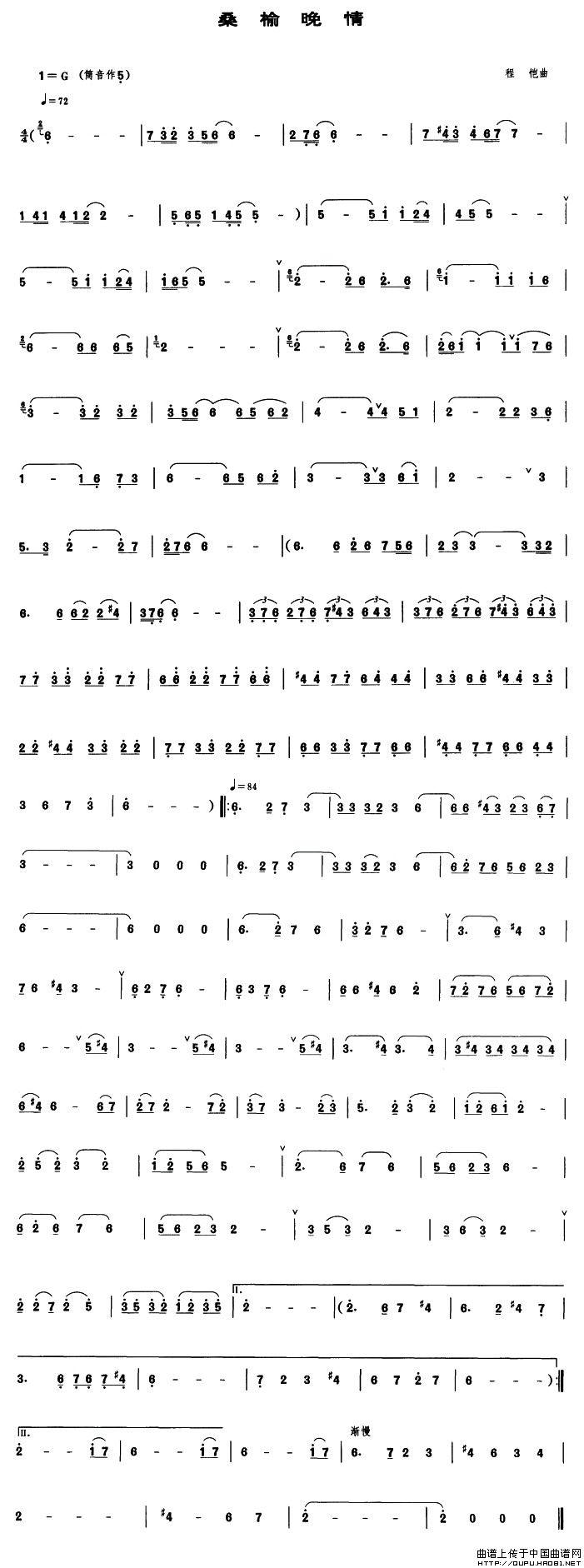 桑榆晚情(管子谱)相关五线谱