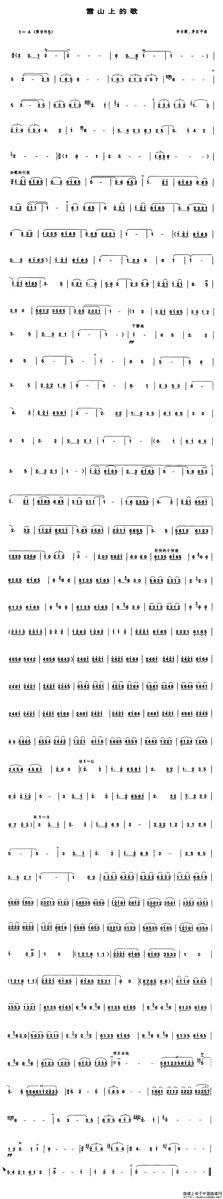 雪山上的歌(管子谱)