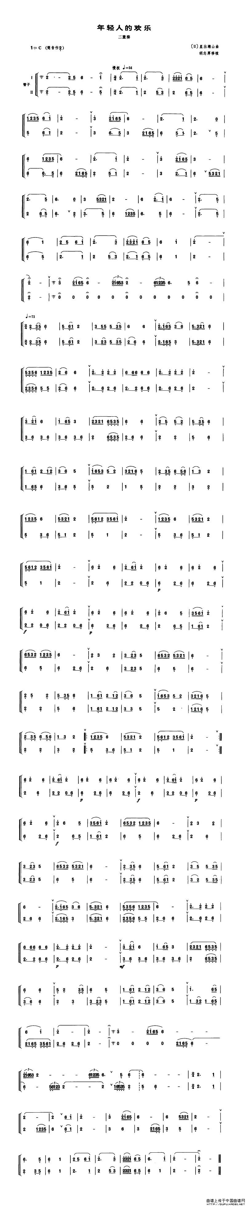 年轻人的欢乐(管子二重奏谱)相关五线谱