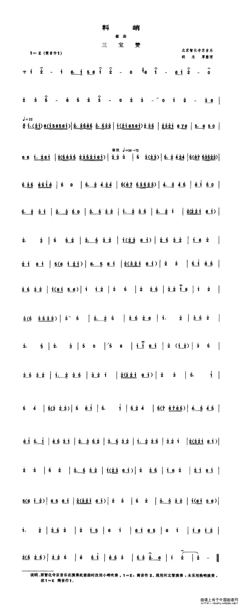料峭(套曲 [管子谱])相关五线谱