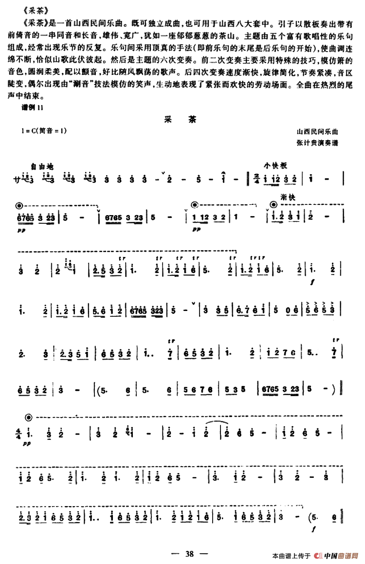 采茶(管子谱)相关五线谱