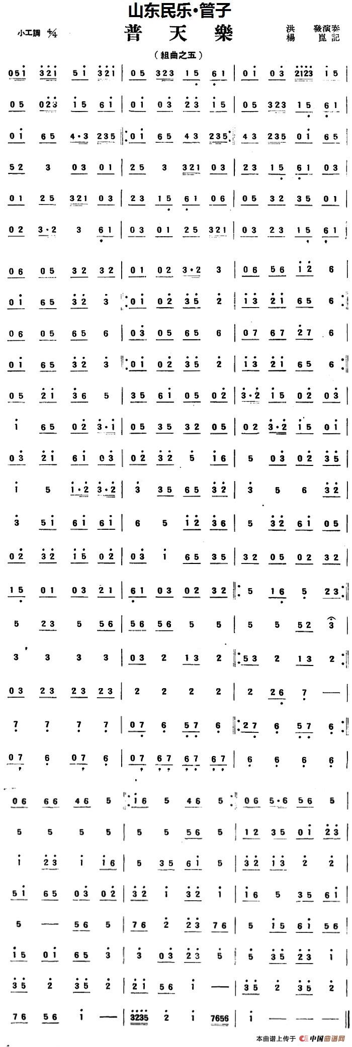 普天乐(山东民乐、管子)相关五线谱