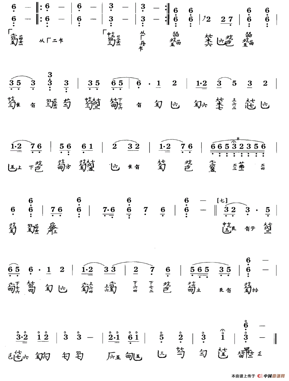 楚歌(古琴谱 降B调 简谱+减字谱)