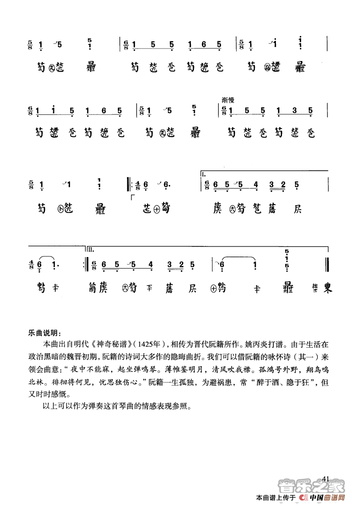 酒狂(古琴曲)(许健记谱)相关五线谱