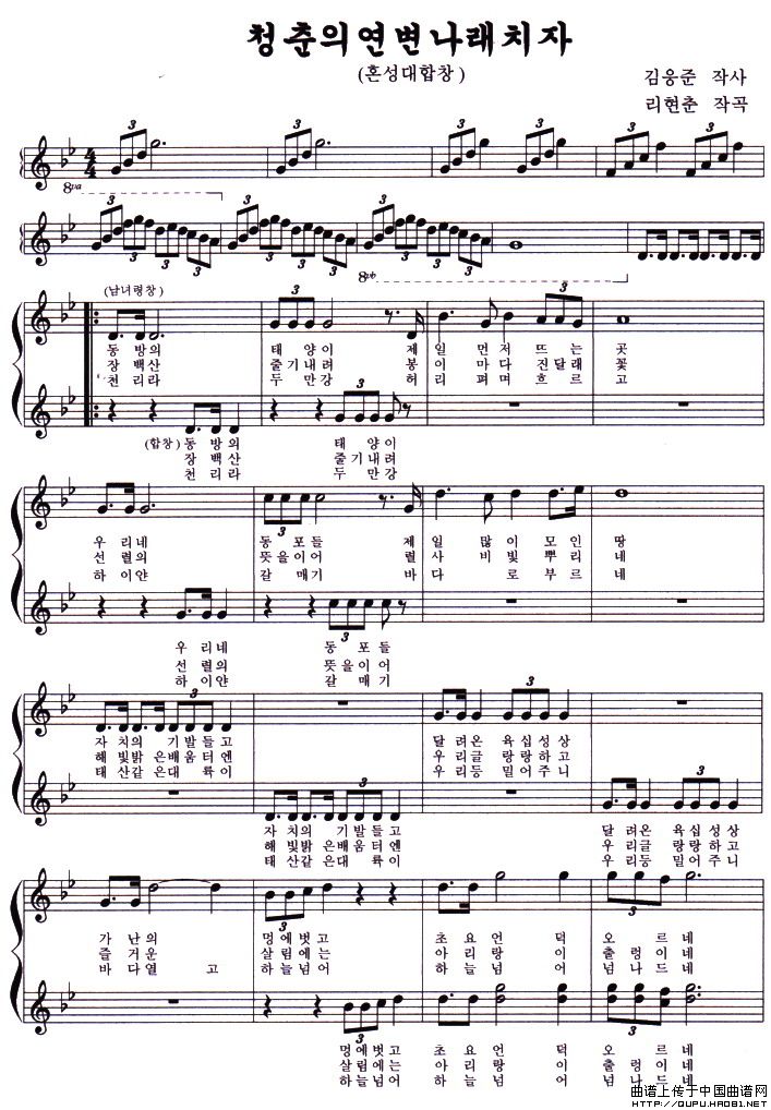 青春的延边展翅飞翔(朝鲜族文)(五线谱)相关五线谱