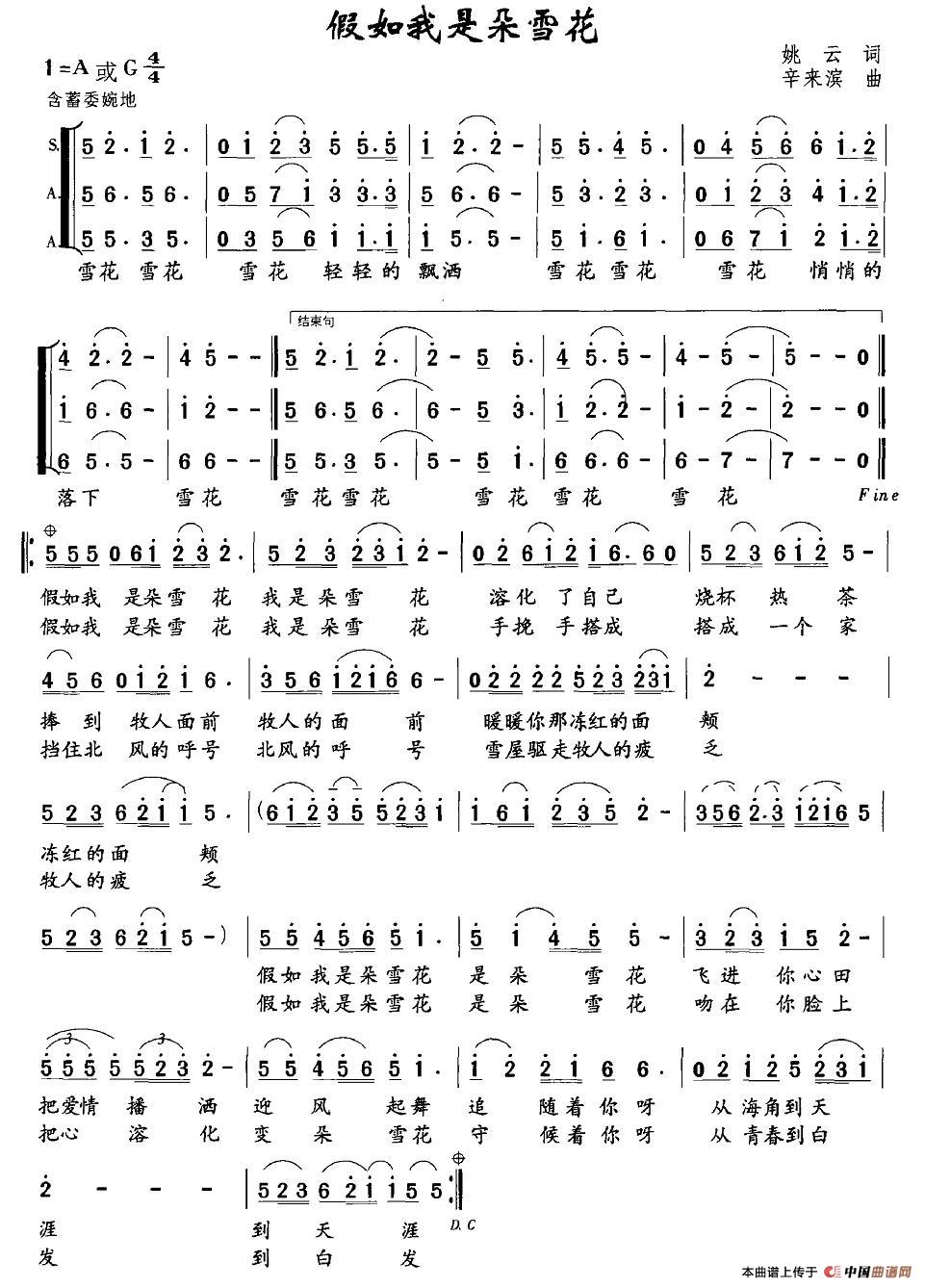 假如我是朵雪花相关五线谱