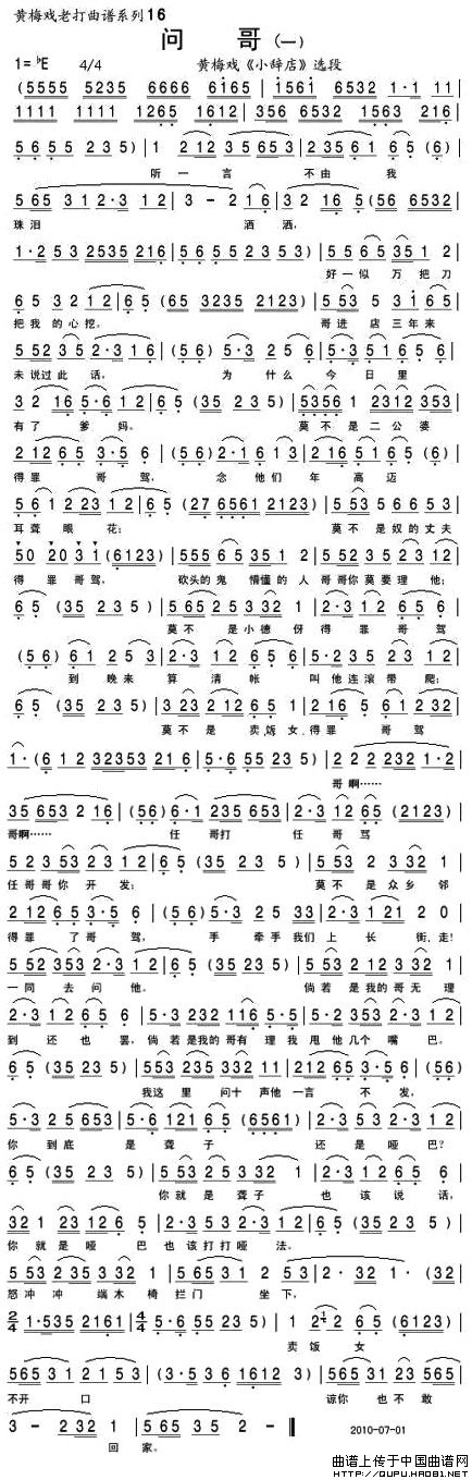 问哥(一 [《小辞店》选段])相关五线谱