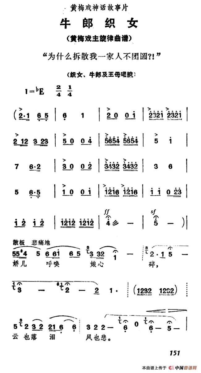 为什么拆散我一家人不团圆?!(《牛郎织女》织女、牛郎及王母唱腔)相关五线谱