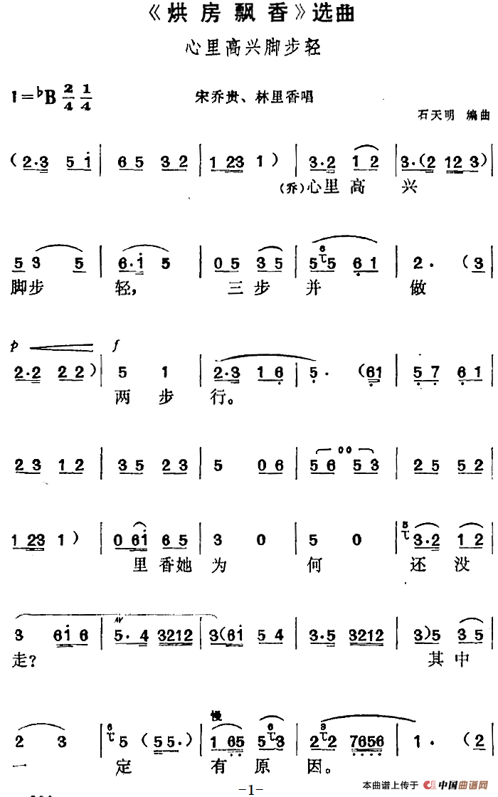 《烘房飘香》选曲:心里高兴脚步轻(宋乔贵、林里香唱段)相关五线谱