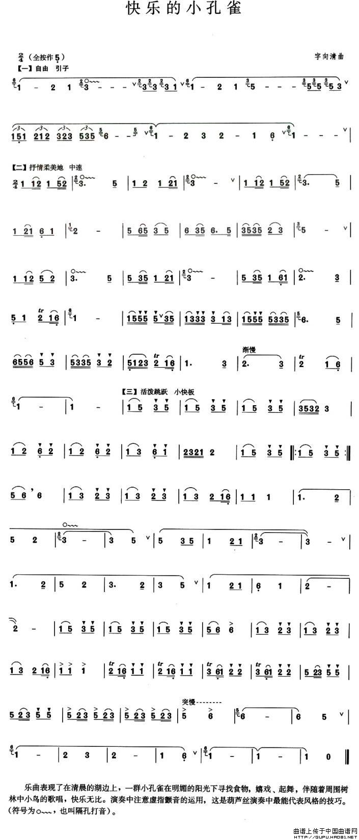 快乐的小孔雀(葫芦丝谱)