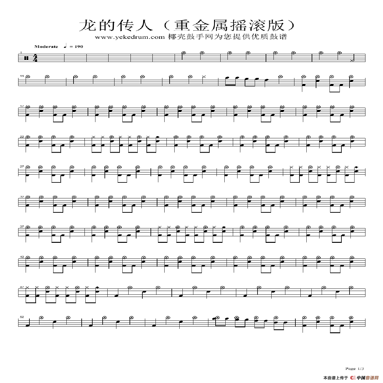 龙的传人(重金属摇滚版)(架子鼓谱)相关五线谱