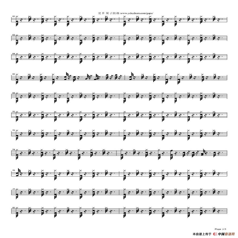 4条架子鼓中四步及帕斯舞曲节奏练习曲