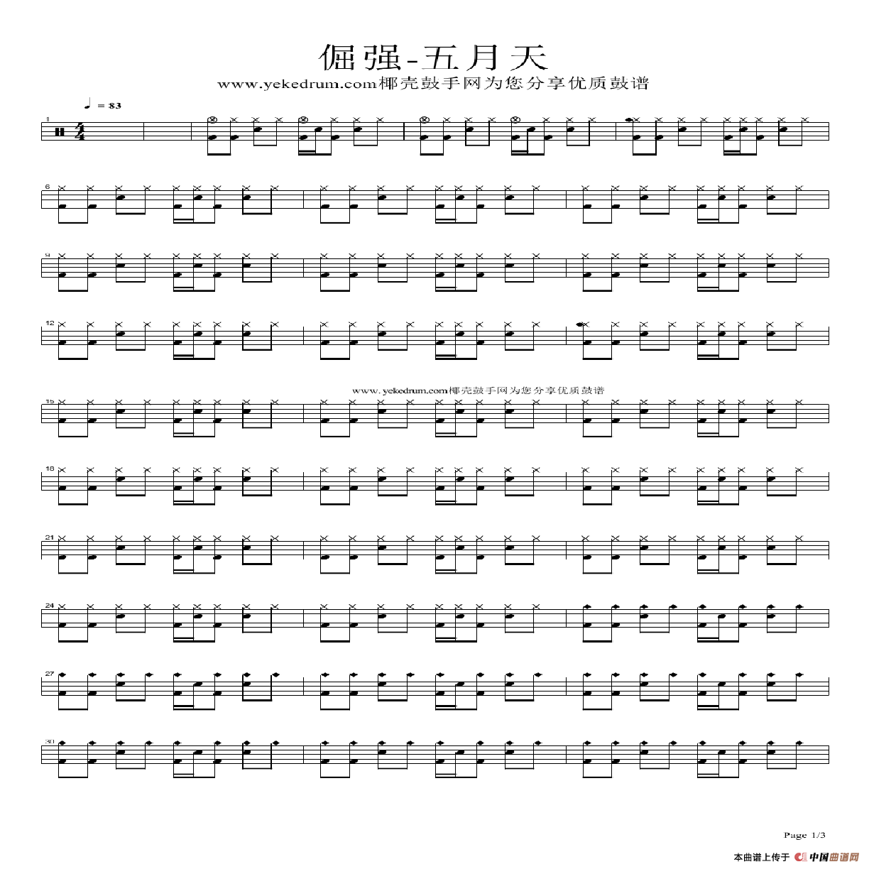 倔强(架子鼓谱)