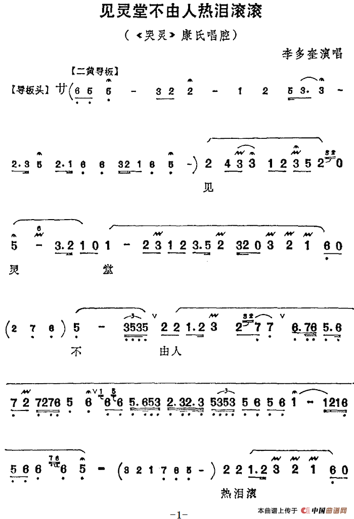 见灵堂不由人热泪滚滚(《哭灵》康氏唱腔)相关五线谱