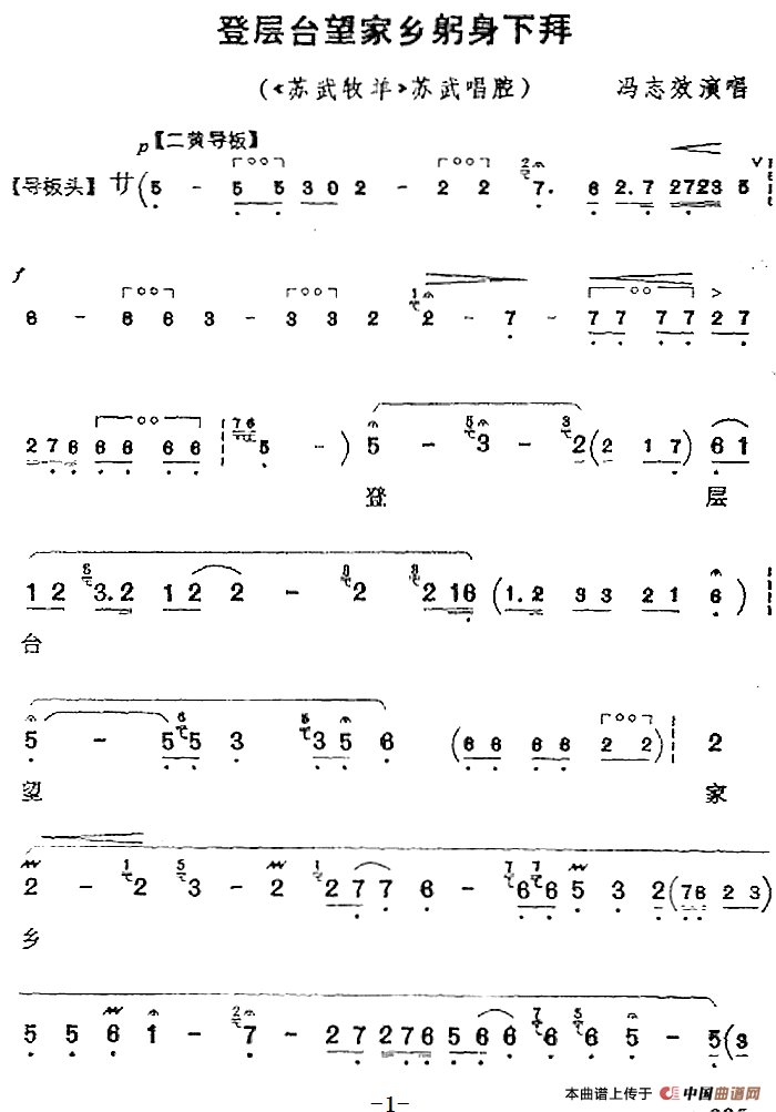 登层台望家乡躬身下拜(《苏武牧羊》苏武唱腔)相关五线谱