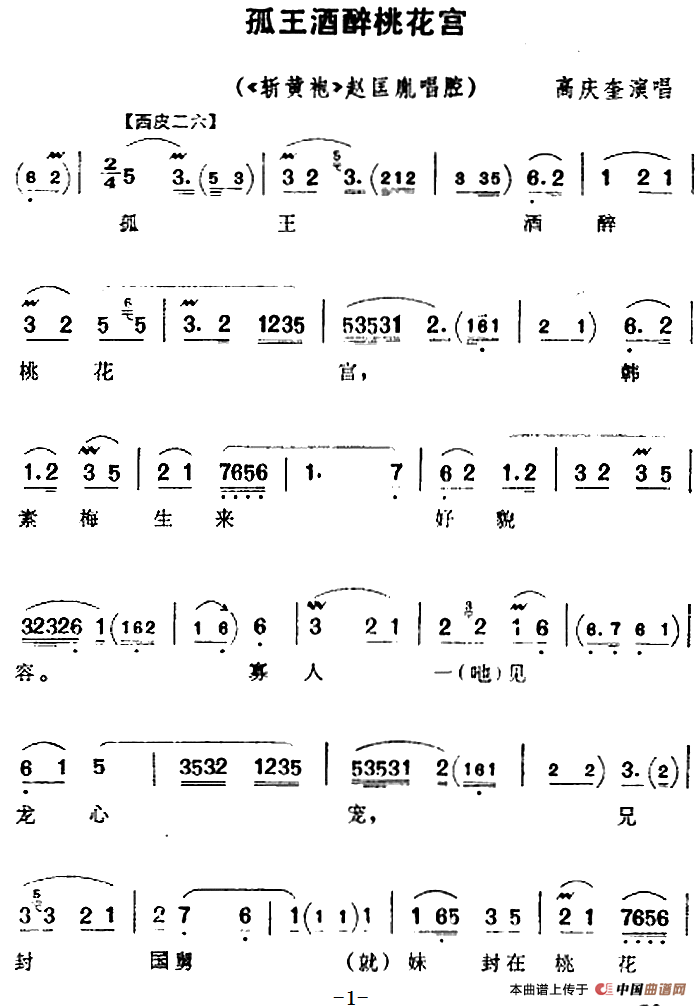 孤王酒醉桃花宫(《斩黄袍》赵匡胤唱腔)相关五线谱