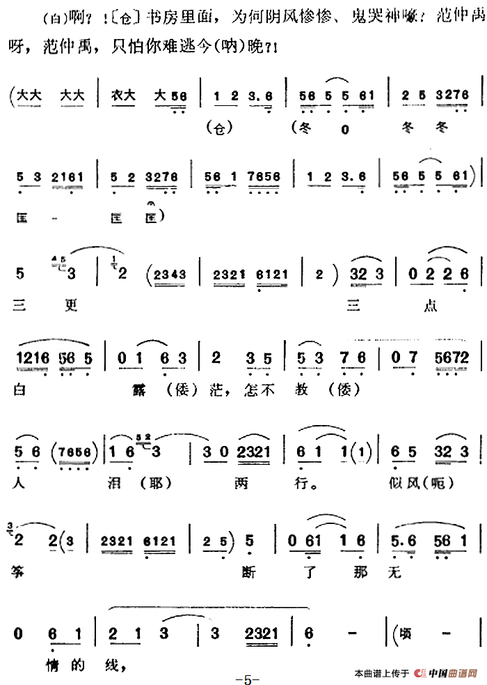 听谯楼打罢了初更时分(《闹府》范仲禹唱腔)相关五线谱