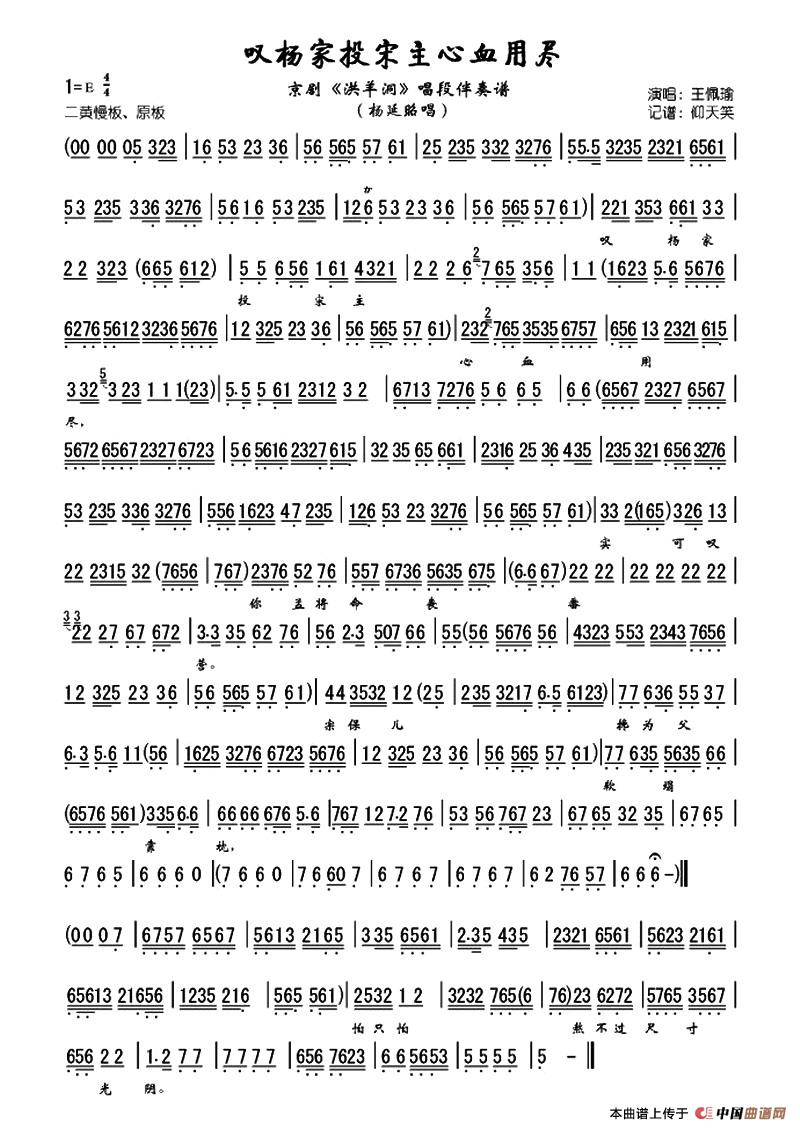 - 《洪羊洞》全本唱段伴奏谱:为国家那何曾半日闲空(杨延昭唱段)