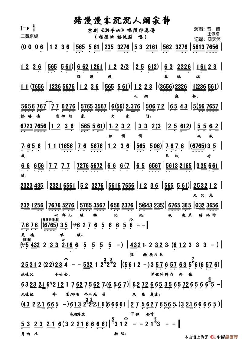 - 《洪羊洞》全本唱段伴奏谱:风萧萧冷飕飕星稀月半(杨继业唱段)