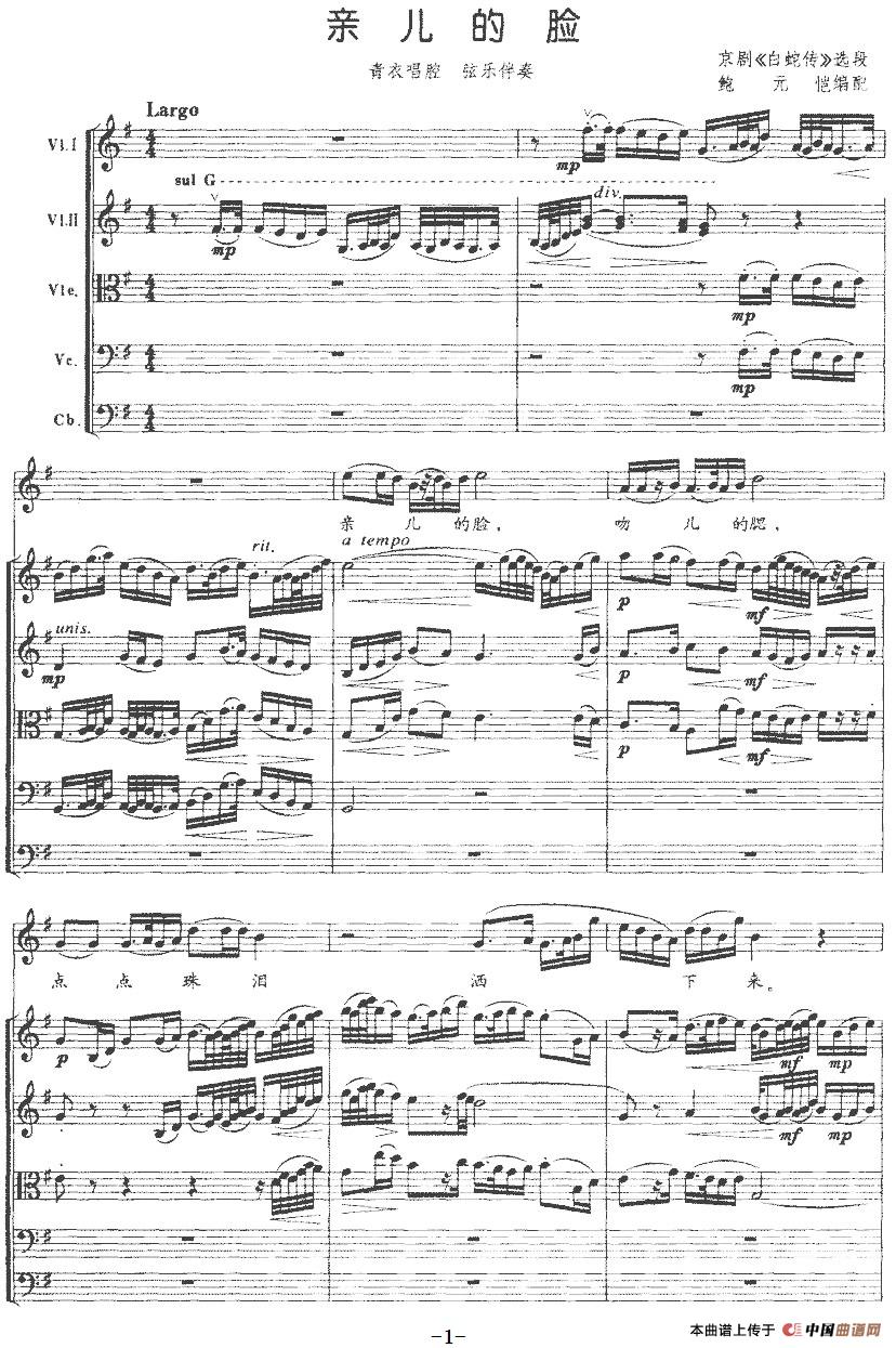 亲儿的脸(京剧《白蛇传》选段青衣唱腔+弦乐伴奏)相关五线谱
