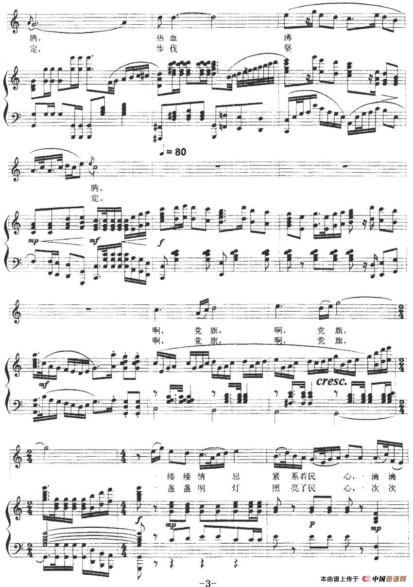 党旗颂(佚名词 辛翠曲、正谱)相关五线谱