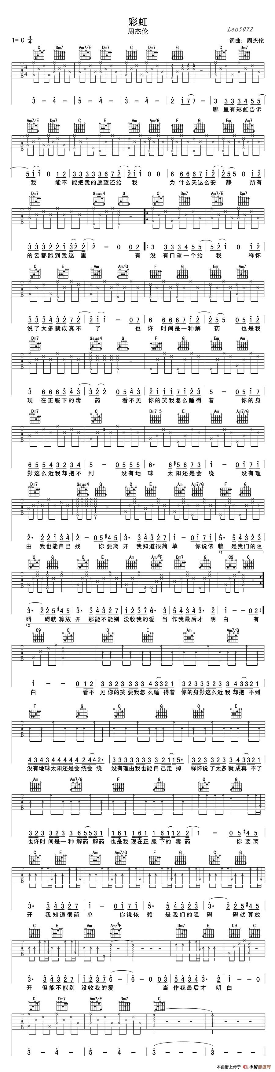 彩虹(周杰伦词曲、五线谱)
