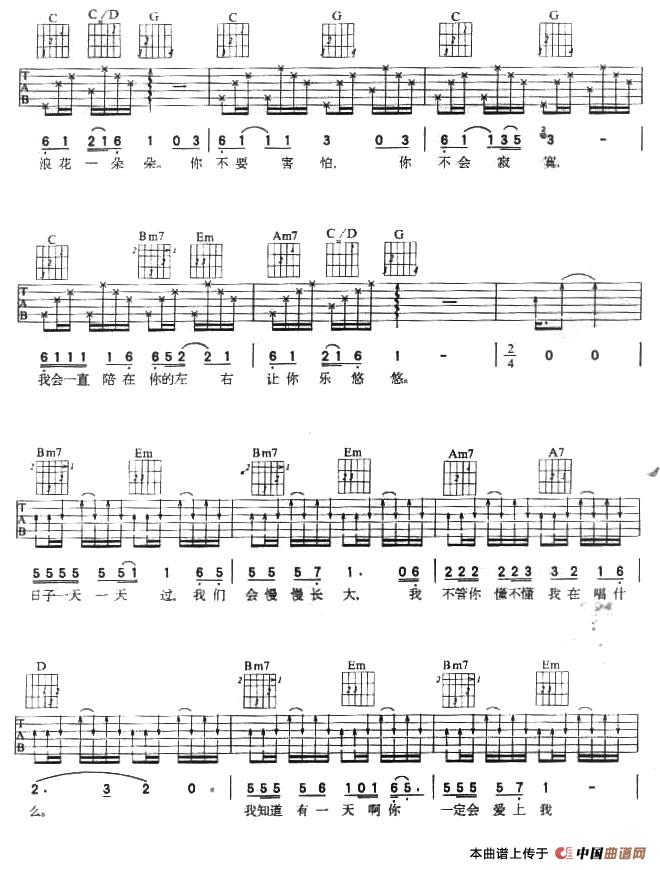 浪花一朵朵相关五线谱