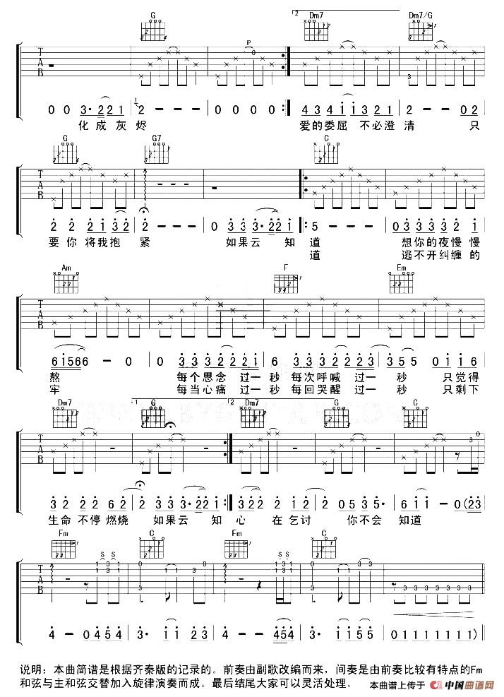 谭维维 如果有来生 吉他谱(无限延音编配)