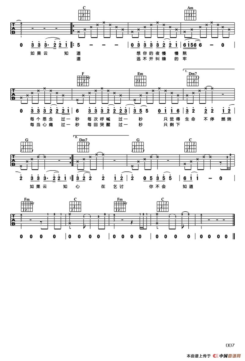 如果云知道相关五线谱