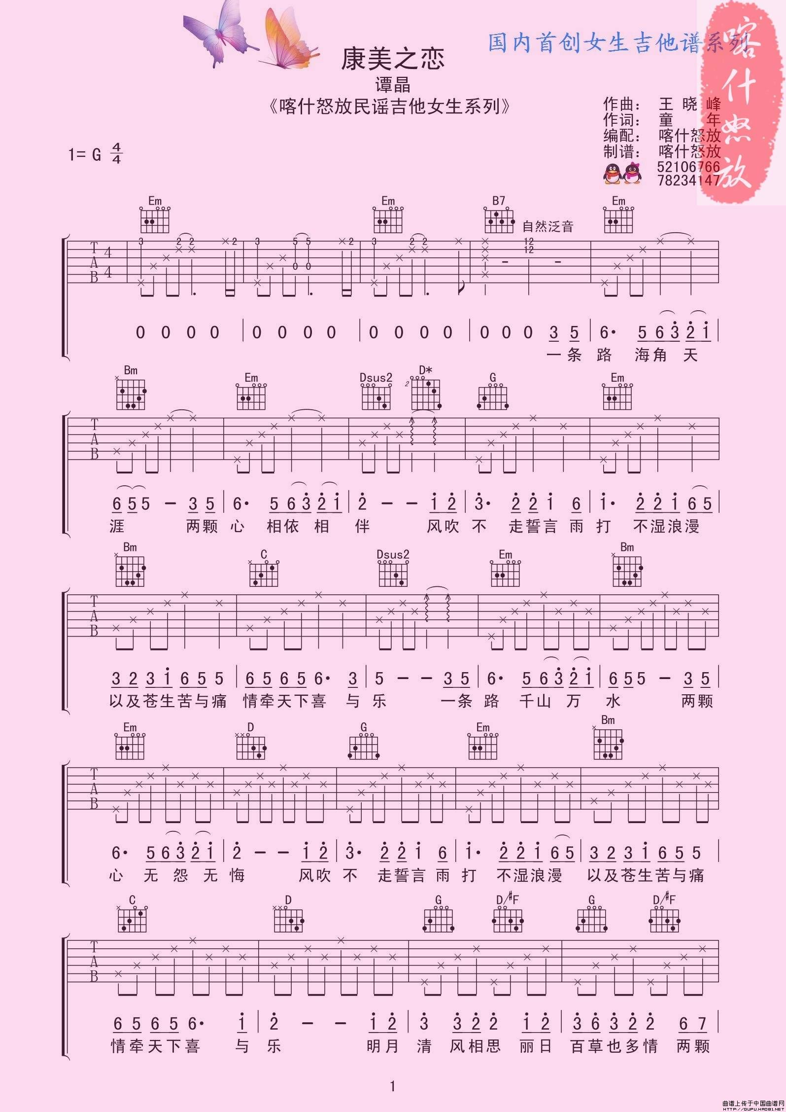 康美之恋(喀什怒放编配版)相关五线谱
