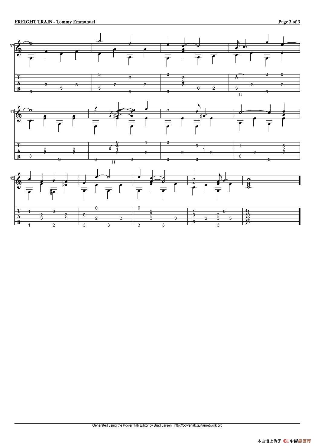 tommy emmanuel:freight train(指弹吉他)相关五线谱