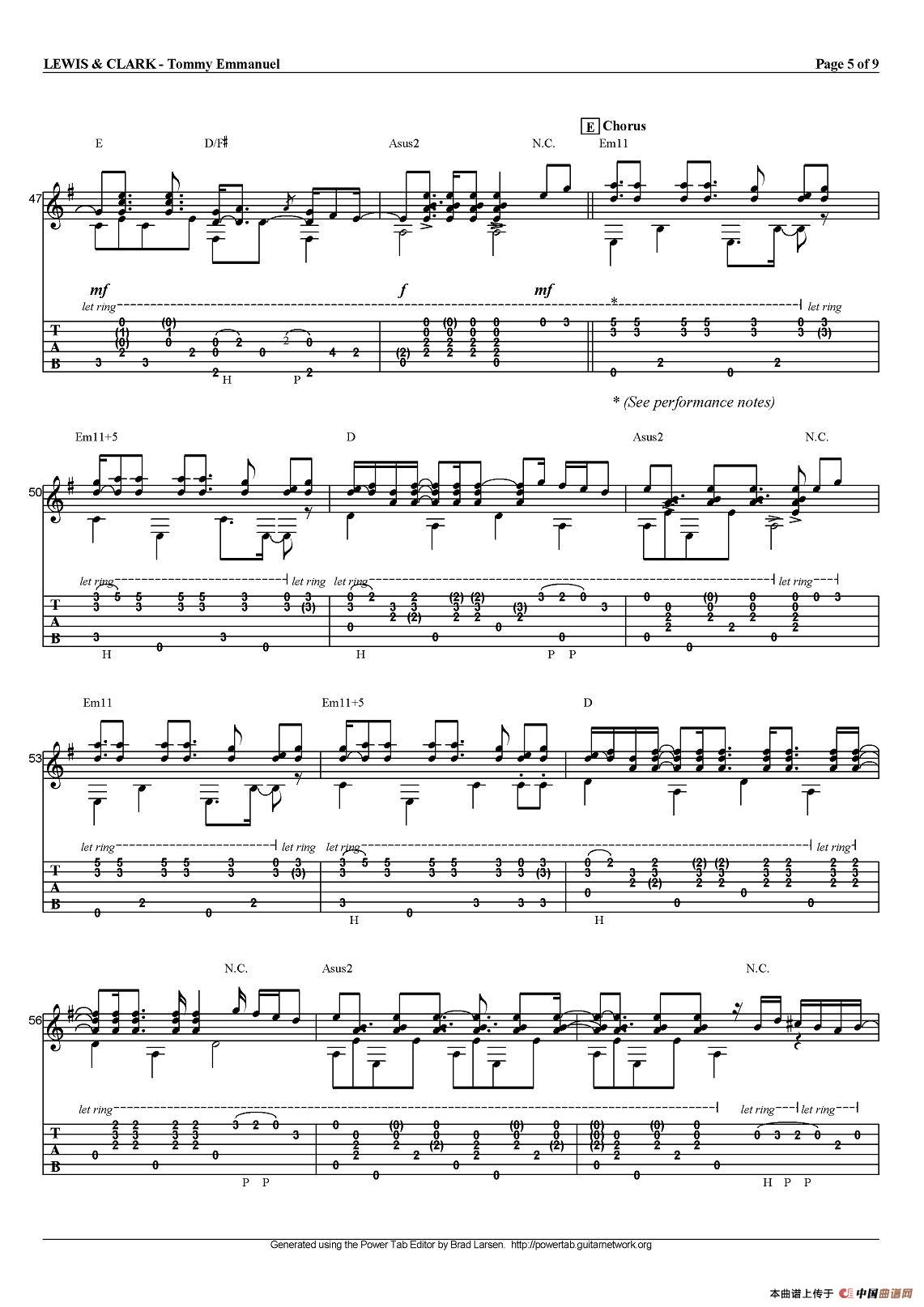 tommy emmanuel:lewis and clark(指弹吉他)相关五线谱