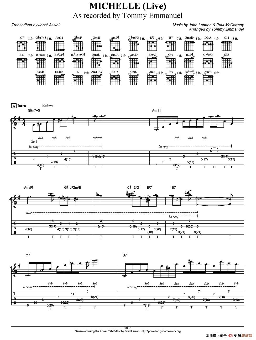 tommy emmanuel:michelle (live)(指弹吉他)相关五线谱