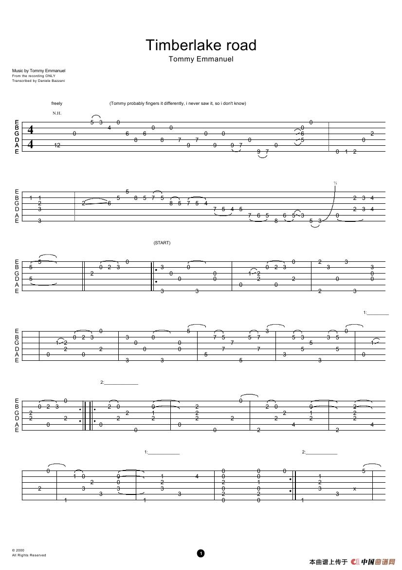 tommy emmanuel:timberlake road(指弹吉它)相关五线谱